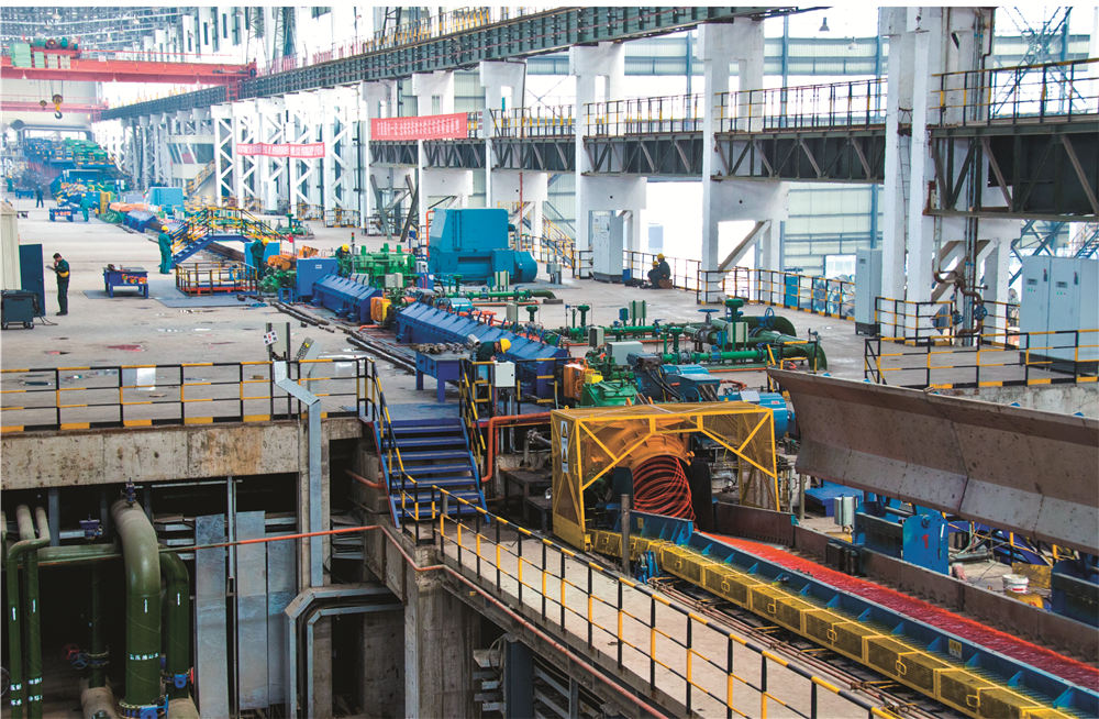 精品高線生產(chǎn)線年產(chǎn)能70萬噸,關(guān)鍵技術(shù)和高速區(qū)核心工藝和設(shè)備由美國摩根公司設(shè)計和提供,全線自動化和傳動系統(tǒng)由ABB公司負責(zé)設(shè)計和集成,使產(chǎn)品在質(zhì)量、性能和成本等方面都具有很強的市場競爭能力。該生產(chǎn)線采用國際上先進適用的生產(chǎn)技術(shù)和裝備,最大終軋保證速度為112m/s,采用熱裝熱送工藝及世界上先進的精軋機“8+4”型式等,可實現(xiàn)熱機軋制工藝技術(shù)、全線的數(shù)字化控制和在線測徑技術(shù)、全線的控軋控冷技術(shù)、在線HotEye熱眼影像式表面質(zhì)量檢測技術(shù)。生產(chǎn)的線材內(nèi)部組織均勻,橫斷面上晶粒度差小于1級,通條性能均勻,氧化鐵皮少。產(chǎn)品規(guī)格:?5mm~?25mm,主要產(chǎn)品為軸承鋼、彈簧鋼、冷鐓鋼、簾線鋼、易切削鋼等。應(yīng)用于軸承、汽車、風(fēng)力發(fā)電、橋梁建筑等領(lǐng)域,是一條具有國內(nèi)一流、國際領(lǐng)先水平的高速線材生產(chǎn)線。