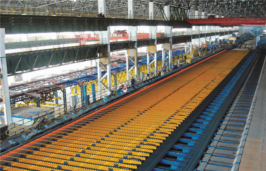 特殊鋼棒(卷)生產線是一條全連續式棒材和大盤卷復合熱軋生產線,加熱爐,連軋機,KOCKS減定尺徑軋機,飛剪,卷取樣,打包機等關鍵設備主要設備從法國斯坦因公司、意大利達涅利公司、德國kocks公司以及SIMENS及瑞典桑得斯公司引進。該生產線減定徑機組德國KOCKS軋機是世界上生產圓鋼尺寸精度極高的軋機,軋出的成品圓鋼精度等級能達到甚至高于1/4~1/5DlN1013標準,并且可以實現自由尺寸軋制,可實現熱機軋制工藝技術,全線的數字化控制和在線測徑技術、全線的控軋控冷技術、在線探傷技術。產品規格:?16mm~?90mm直條棒材和?14mm~?50mm大盤卷。直棒產品主要以軸承鋼、彈簧鋼、合結鋼、非調質鋼、碳素結構鋼、易切削鋼等產品為主。大盤卷產品主要以冷鐓鋼、優質碳素結構鋼、合金結構鋼、軸承鋼、易切削鋼、彈簧鋼等為主,是一條具有國內一流、國際領先水平的棒材、大盤卷復合生產線,產品具有內部組織均勻、表面質量好、尺寸精度高、產品品類全等特點。
